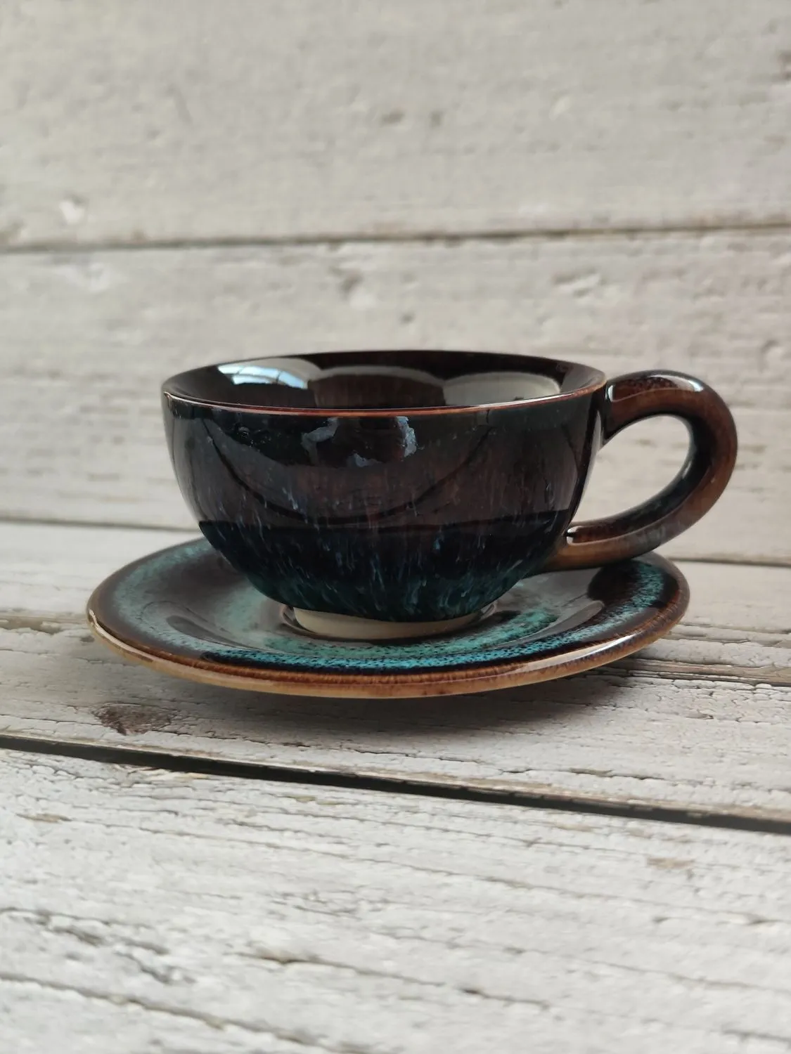 Presentation matters on the pass and on camera. The saucer’s shallow well frames the drink, catches tiny drips, and adds a stable footprint for trays and handoffs. Set cup and saucer together and you deliver a premium plate that photographs beautifully for menus and social posts while protecting counters from splashes that slow the line. The black body with blue and brown touches looks intentional and modern without shouting over the drink, making the Ceramic Mug a natural brand asset.